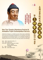 為遵循中國人慎終追遠,追思先人恩德的傳統,亦為眾姓護法門中歷代先遠考妣宗親暨個人之累劫冤親債主誦經禮懺,佛光山南天寺特啟建『清明法會-慈悲三昧水懺』乙壇,將一切禮懺功德回向祖禰得以往生蓮邦,檀那信眾增福增壽,闔府吉祥如意。
