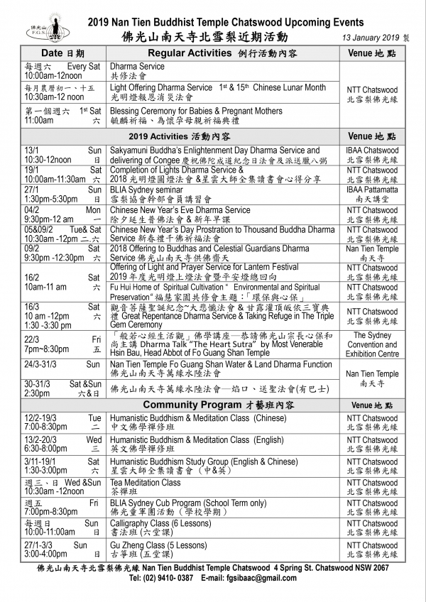 | 課程表 | 道場參訪 | 雪梨南天講堂 | 佛教經典 | 南天義工 | 光明燈 | ||