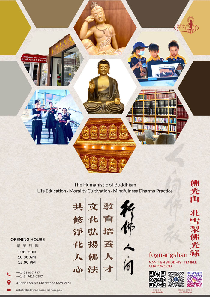 佛光山北雪梨佛光緣奉行本山四大宗旨:以文化弘揚佛法,以教育培養人才,以慈善福利社會,以文化淨化人心,也在雪梨的北邊建立了一定的知名度。