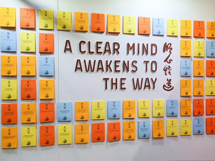 展覽的書籍,分為英⽂書籍專區、中文、各語種圖書及兒童圖書專區,共囊括七⼤類的大師著作,約百種書籍涵蓋⽣活、健康、禪修以及教育等⽅⾯,滿足各類讀者的閱讀興趣,吸引了來⾃不同國家和地區使⽤不同語⾔的讀者前來閱讀購買。此外,讀者們在諮詢選購書籍的同時還參與到法語結緣的互動當中。展覽將⼤師的法語布置在整⾯牆壁上模擬平⽇裡「抽法語」的場景,⽅便讀者與遊客隨喜結緣。平凡質樸的詞藻,⿎舞⼈⼼的語句以及法師們現場「解疑答惑」充實溫暖著讀者的⼼靈,為讀者帶來信⼼、歡喜、希望與⽅便。 |