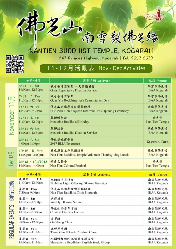 | 課程表 | 道場參訪 | 雪梨南天講堂 | 佛教經典 | 南天義工 | 光明燈 | ||