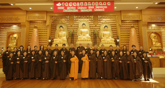 | 澳洲佛光山南天寺於12月5、6日舉行「2020甘露灌頂三皈五戒菩薩戒典禮」,在配合政府防疫政策下,同時為讓更多人能參與戒會,網路科技的進步,開創出新的契機,除雪梨地區南天講堂,甚至橫跨澳洲的西岸,近四千公里遠的西澳道場,也能同步直播現場戒會課程及典禮,其功勞是位居幕後是匯集南、北雪梨佛光緣的8位直播組成員。 整場戒會共接引了近230位戒子皈依受戒。 |