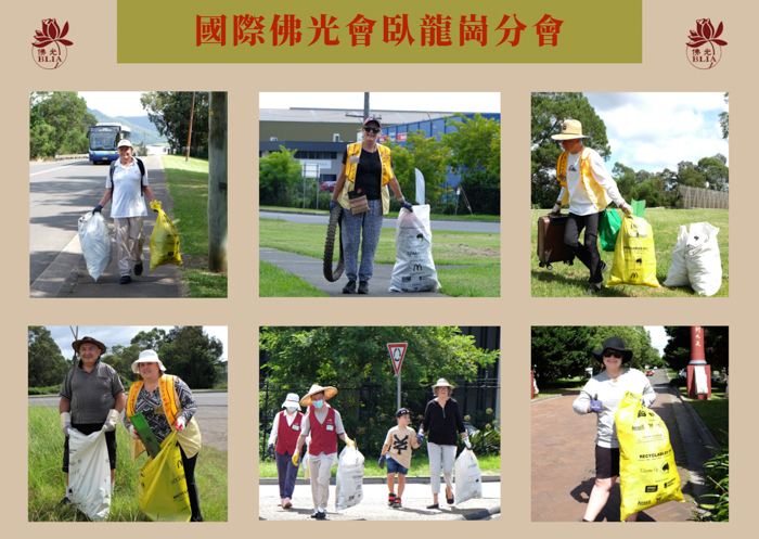 | 響應全國性年度澳洲清潔日 (Clean Up Australia Day),佛光山南天寺、南天講堂、北雪梨佛光緣、南雪梨佛光緣與國際佛光會雪梨協會總動員,3月6日及7日動用206位義工,其中包括佛光會員、佛光青年、佛光童軍及信徒義工,在公園、火車站、樹林、海灘及社區等公共場所,服務社會清潔環境,共收集49袋垃圾,經分類後,其中3袋是可回收垃圾。自1990年開始參加澳洲清潔日,今年邁進第31年持續參加具意義的社區活動。 |