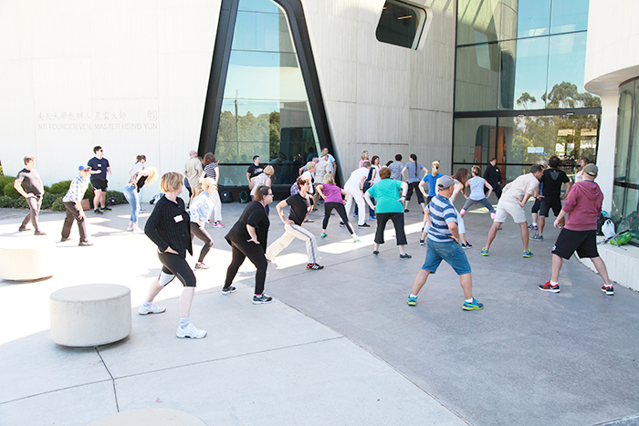 此次活動還邀請到有10年太極與氣功經驗,並於上海榮獲過第十五屆世界精武武術國際比賽金牌的Louise Zaslawski女士,帶領大家做「八段錦」,放鬆身心。當天的行程,大家於南天大學Karma Café享用美味的西式素食午齋,在南天寺禪堂由妙友法師指導如何通過禪坐,自我關照「禪」在於心的意義。