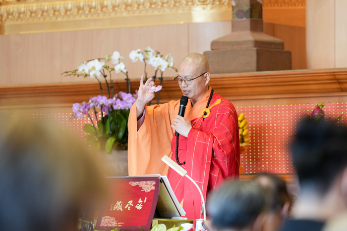 | 心培和尚為新戒開示:皈依佛能修持福慧圓滿,成就佛性;皈依法如同接受甘露法水的滋養,可清淨身心,透過修持「四念處」及「三法印」等,加強正知正見;皈依僧如同耕種福田,向善知識學習佛法,清淨身口意三業。 |