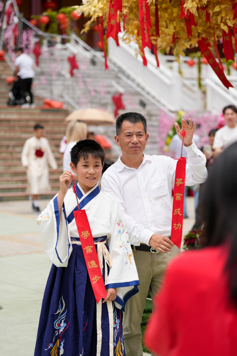 | 為讓來山遊客租借及試穿漢服,提供漢服租借攤位,換裝後,漫步在寺院裡的蓮花池畔、樹林、竹林、經過南天橋漫步至南天大學。不僅是華人,澳洲本地居民也嘗試身著漢服,感受中華文化獨創特色。 |