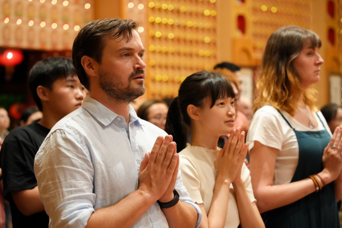 來自西班牙的Antonio,感受到南天寺與自然融合的環境讓他非常放鬆,參加除夕園遊會的人都很友善、快樂,他很享受與全家一起體驗。來自日本的Akane和Newcastle的Aidan從網路上了解活動訊息後專程結伴前來,他們對參加新年法會及祈福感到歡喜殊勝,祈願家庭和諧、世界和平。 |