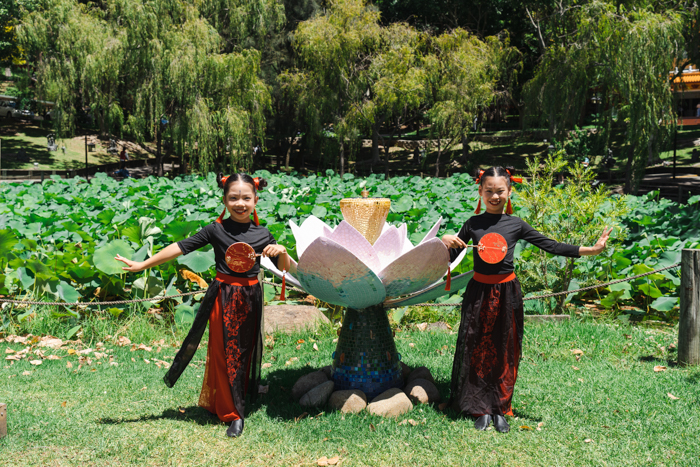 專業舞蹈學校 IDance Studio 校長 Lisa 與 Grace 及萬曦老師,寄希望一首成人古典舞〈放燈行〉能讓遊客在疫情不穩定的當下,感受舞者的優美舞姿和生命的勃勃生機。9歲的學生 Isabella 與 Lindsay 自4歲開始學習舞蹈,感到很榮幸可以表演兒童蒙古舞〈筷子舞〉和古典舞〈燕無歇〉。來自 The One Dance Studio 的小朋友,以中國風結合「街舞」表演〈飛天〉舞蹈,小朋友的童真配合 HIPHOP 動感舞蹈步伐,讓遊客感受到熱情與活力,沖淡疫情帶來的煩惱。