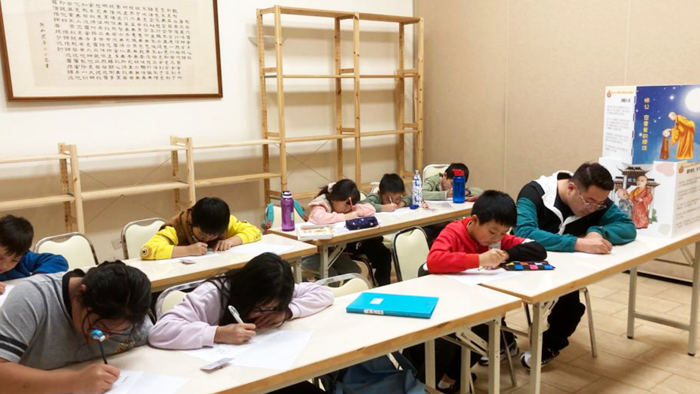 南天中華學校慈悲三中文班利用「故事方盒」教學,由黃華老師與學生們以中英文對講故事,也透過抄寫〈師公,您是我的榜樣〉這首短詩向師公學習慈悲的性格、智慧的待人處事方法。