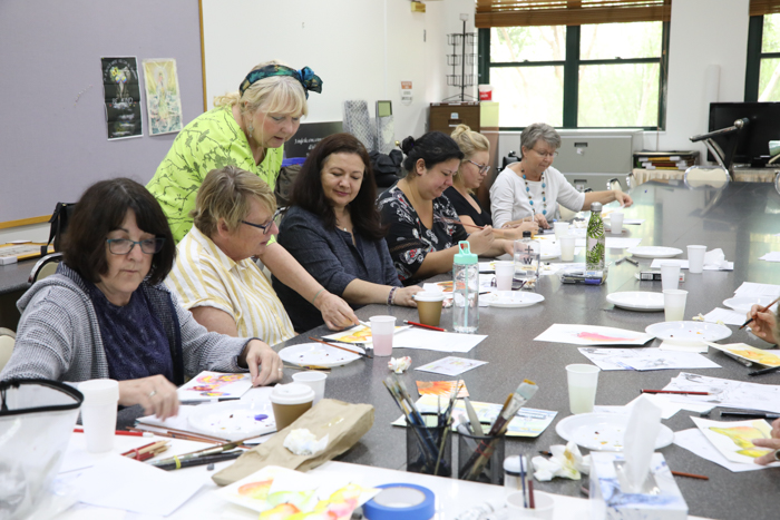 「社區參與藝術計畫」2019年「愛的季節」展覽受邀藝術家Linda Brown,2月28日帶領其繪畫班學員,師生共7人至南天寺進行參訪及戶外寫生。學員們在優美寧靜的蓮花池旁,運用老師傳授的繪畫技巧用心作畫,心中滿是歡喜。