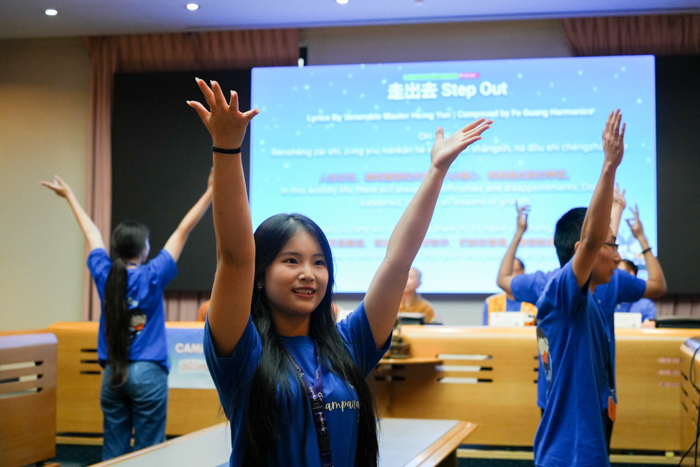 典禮壓軸,佛光青年為大家獻唱成長營的主題歌,人間音緣〈走出去 Step Out〉,希望佛光青年們能夠走出去擁抱世界,眾中有我,發現最真的自我;走出去成就因緣,拓展視野和廣結善緣。同時以今年「集體創作」為主題定制的徽章,作為結緣品贈送給與會貴賓和大眾,共結善緣。