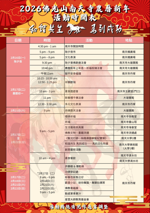 Copyright©1995-2026 Fo Guang Shan Nan Tien Temple, All rights are reserved.