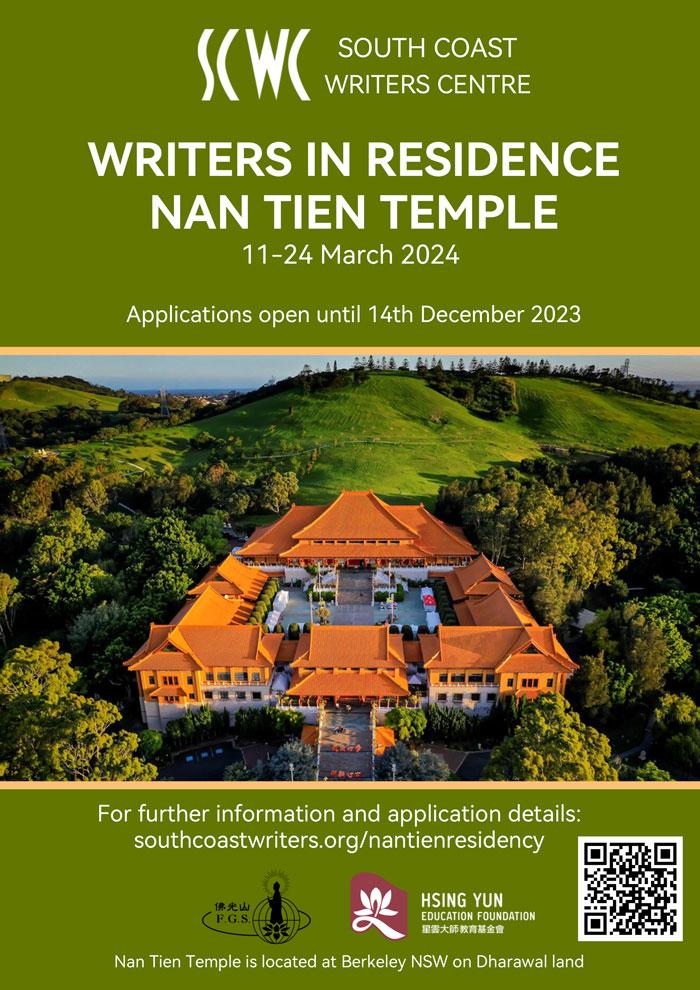 We are delighted to introduce a new partnership with the esteemed South Coast Writers Centre. Nan Tien Temple will be hosting the 2024 Writers in Residencies, a haven for established or emerging writers on the South Coast, or those connected to Nan Tien Temple, seeking an immersive and contemplative writing experience. We have up to 12 residencies on offer between March 11th and 24th, 2024. Set amidst the serene and spiritually enriching ambiance of Nan Tien Temple, our Writers’ Residency Program offers a unique opportunity for writers to delve into the depths of their creativity and explore new and current works. Applications are open until December 14th. Click here for more information.
